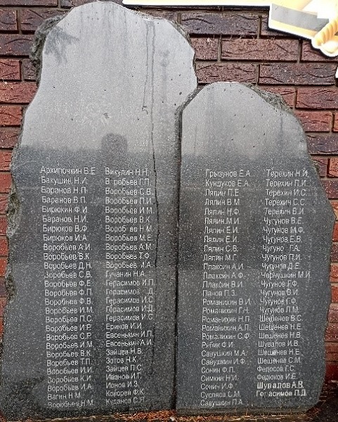Памятник увековечивает имена уроженцев деревни Полково, отдавших свои жизни в борьбе за освобождение родной земли.
