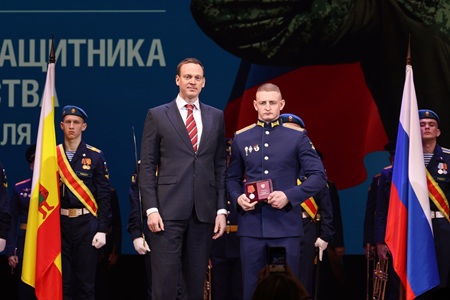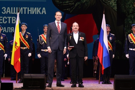 Губернатор Павел Малков вручил государственные и областные награды, в том числе медаль ордена «За заслуги перед Отечеством» II степени с мечами, Медали Жукова, знаки отличия Губернатора «Михаил Скобелев». Кроме того, медали общественного признания «Отец солдата» получили ветераны боевых действий, воспитавшие достойных защитников Родины. Двое сыновей-героев погибли при исполнении воинского долга. Участники торжественного собрания почтили память павших сыновей-героев минутой молчания.