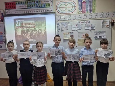 Для детей были проведены уроки памяти, конкурсы чтецов, классные часы «900 блокадных дней», линейки памяти, встречи с участниками СВО – лекторами общества «Знание», организованы выставки рисунков.