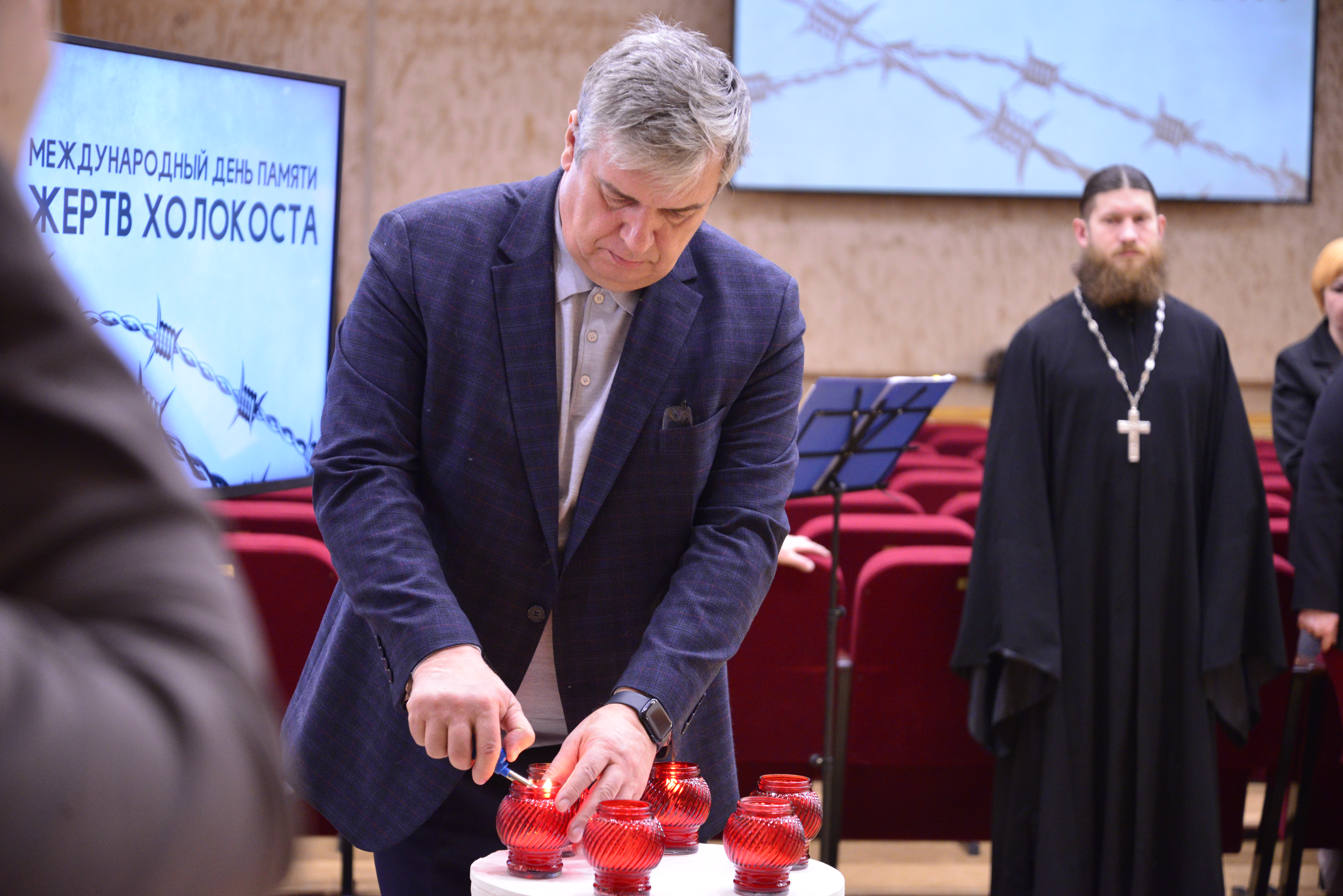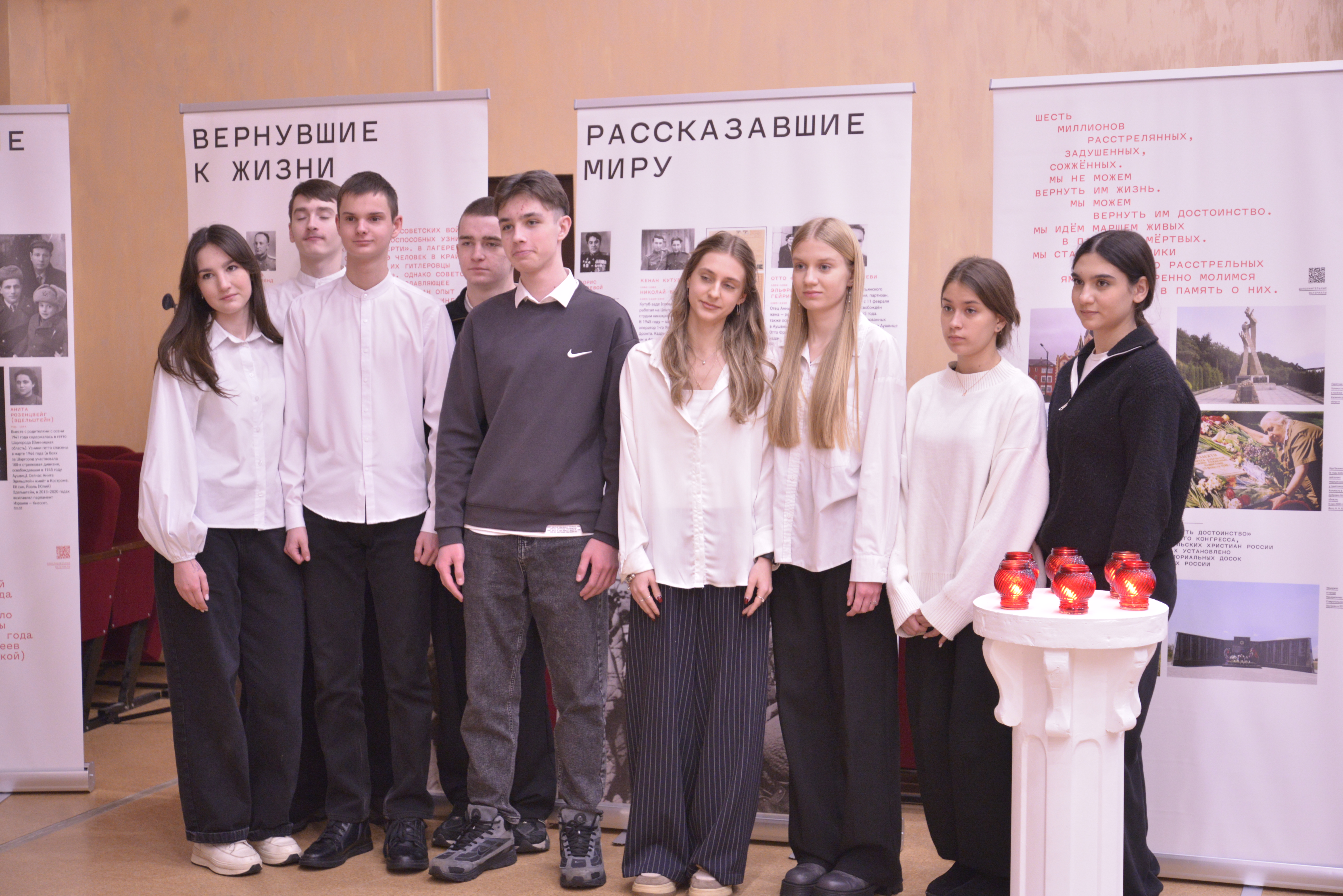 Также участники мероприятия присоединились к Всероссийской мемориальной акции «Свеча памяти». В память о шести миллионах погибших были зажжены шесть свечей.
