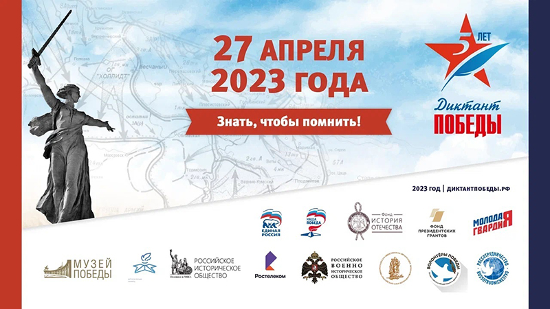 27 апреля по всей России и за рубежом прошла V юбилейная всероссийская акция «Диктант Победы», посвященная 78-ой годовщине Победы в Великой Отечественной войне.