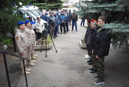 На митинге присутствовали сотрудники и ветераны полиции, юнармейцы, представители власти.