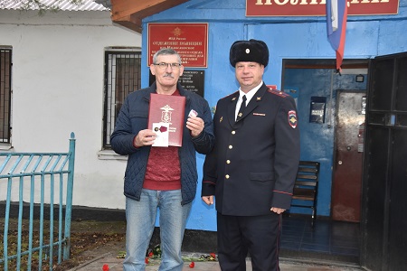 Ветерану органов внутренних дел Сергею Данилкину вручили медаль от совета ветеранов МВД Рязанской области.