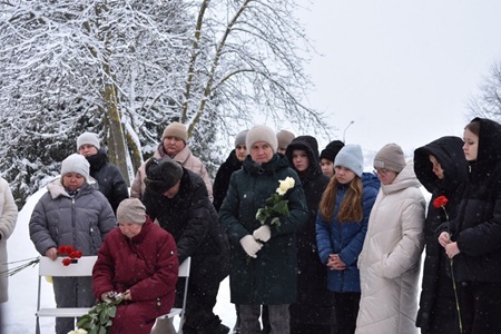 Присутствующие почтили память погибшего минутой молчания и возложили цветы к мемориальной доске.