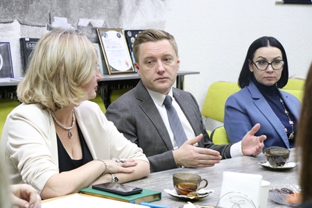 Встреча прошла на площадке Центральной городской библиотеки имени С.А. Есенина. В ней приняли участие первый заместитель Председателя Правительства Рязанской области Денис Александрович Боков, министр территориальной политики региона Жанна Александровна Фомина, директор библиотеки Лариса Анатольевна Крохалева, руководитель КСВО Татьяна Николаевна Штонда и члены организации.