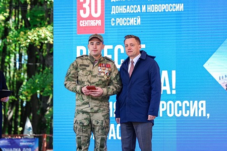 Обращаясь к участникам акции, первый заместитель Председателя Правительства Рязанской области Денис Боков подчеркнул важность воссоединения новых регионов с Россией. «Три года назад произошло важное событие в истории нашей страны: четыре новых региона присоединились к нашему великому русскому братству. От 97 до 99% жителей этих регионов проголосовали за вхождение в состав РФ. Это – один язык, одна культура, один народ. Я хочу поздравить всех с этой датой. Наша страна – самая могучая, великая и объединяющая», – сказал он. За активную военно-патриотическую работу Денис Боков вручил региональные награды представителям Ассоциации ветеранов СВО Рязанской области. Также Знака отличия Губернатора Рязанской области «Михаил Скобелев» был удостоен председатель Правления Рязанской областной общественной организации инвалидов Союз «Чернобыль» Виктор Боборыкин.