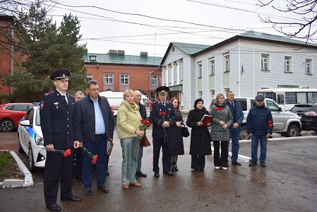 Мемориальную доску открыли заместитель председателя Рязанской областной Думы, генерал-майор полиции в отставке Николай Макариков и старейший ветеран МВД подполковник милиции в отставке Юрий Люхин.