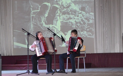В этот же день театр малых форм «Вдохновение» представил программу «Память, застывшая в граните». Это музыкальный спектакль о 900 днях мужества ленинградцев. Так же со сцены прозвучали стихи о войне. Солист ДК Максим Киселев исполнил песню «Журавли», а воспитанники Детской школы искусств Ульяна Мухина и Дмитрий Долгов сыграли на аккордеоне «Песню о криницах».