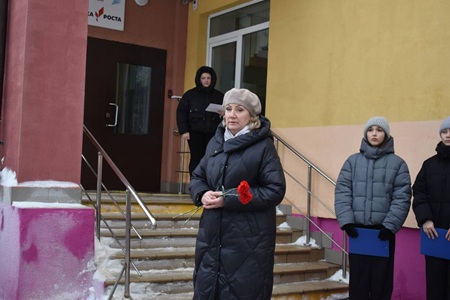 Перед учениками выступил воин-афганец Андрей Сазонов, председатель первичной ветеранской организации ОВД Александр Фомичев, представитель администрации округа Татьяна Баркова.