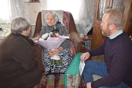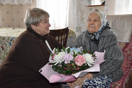 Поздравили юбиляршу со 100-летием глава Спасского округа Нина Соломонова с начальником управления по развитию территорий и благоустройства администрации округа Николаем Редичевым. Они вручили Татьяне Васильевне поздравительное письмо от Президента РФ, подарки и цветы.