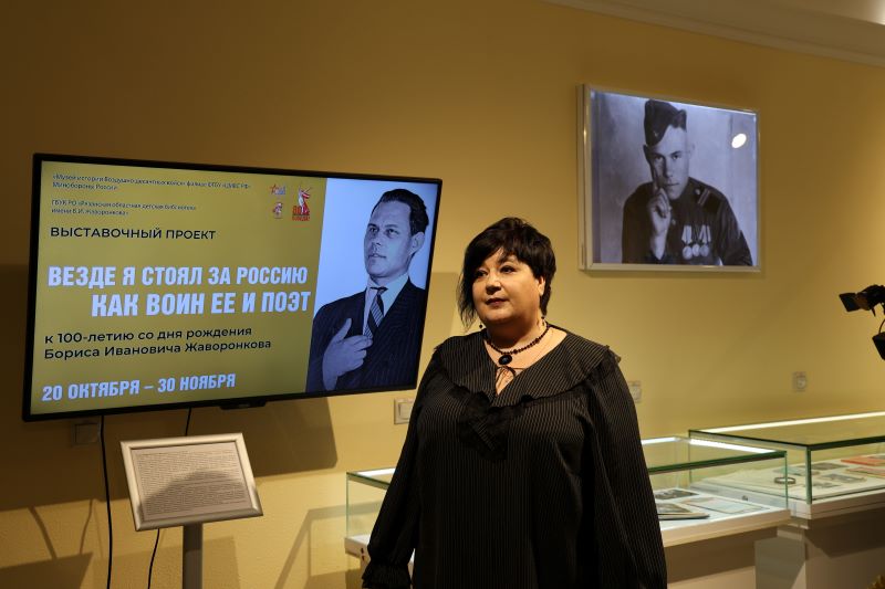 20 октября в Музее истории Воздушно-десантных войск состоялось открытие выставки «Везде я стоял за Россию как воин ее и поэт». Событие приурочено к 80-летию Великой Победы, 95-летию образования Воздушно-десантных войск и 100-летию со дня рождения Бориса Ивановича Жаворонкова, рязанского писателя и журналиста, лауреата литературных премий, участника Великой Отечественной войны, почетного гражданина города Рязани.