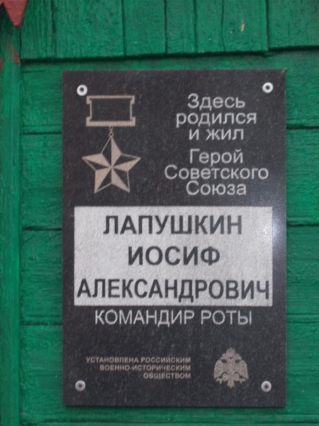 Описание: установлена на доме, в котором родился и жил Герой Советского Союза И.А. Лапушкин.