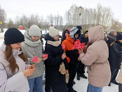 К мемориалу участникам локальных войн возложили цветы. Ежегодно в этот день проходит патриотическая акция «Красный тюльпан». Красный тюльпан — символ войны в Афганистане и памяти о героях, не вернувшихся с нее. Его выбрали в противовес «Черному тюльпану» — так называли самолет, в котором отправляли тела погибших советских солдат. Красные тюльпаны изготовили участники Клуба выходного дня Дворца культуры.