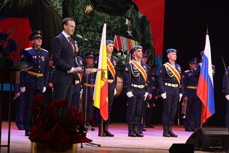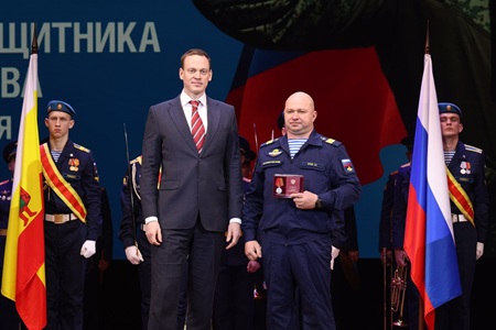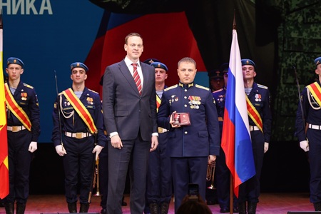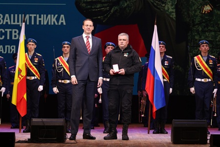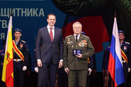 Губернатор Павел Малков вручил государственные и областные награды, в том числе медаль ордена «За заслуги перед Отечеством» II степени с мечами, Медали Жукова, знаки отличия Губернатора «Михаил Скобелев». Кроме того, медали общественного признания «Отец солдата» получили ветераны боевых действий, воспитавшие достойных защитников Родины. Двое сыновей-героев погибли при исполнении воинского долга. Участники торжественного собрания почтили память павших сыновей-героев минутой молчания.