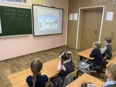 Для детей были проведены уроки памяти, конкурсы чтецов, классные часы «900 блокадных дней», линейки памяти, встречи с участниками СВО – лекторами общества «Знание», организованы выставки рисунков.