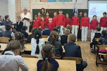 «В школе первая такая парта посвящена Герою Советского Союза, штурману авиации Антонине Зубковой, ее открыли в 2019 году, за ней сидел четвероклассник Павел Ильичев. Вторая – Руслану Собачевскому – в 2024 году, ее занял Владимир Калараш. Сегодня открыли третью – Ильи Васильева, за которую посадили ученика 1-го класса, отличника учебы Артема Немченко.