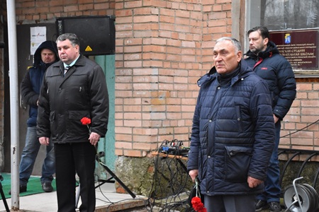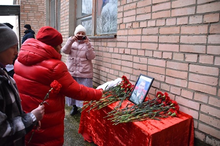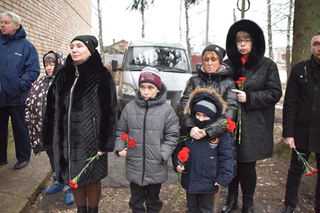 Мемориальную доску открыли жена Андрея Грекова Надежда и мама героя Инна Николаевна. В память о герое к его портрету возложили живые цветы.