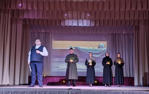 В этот же день театр малых форм «Вдохновение» представил программу «Память, застывшая в граните». Это музыкальный спектакль о 900 днях мужества ленинградцев. Так же со сцены прозвучали стихи о войне. Солист ДК Максим Киселев исполнил песню «Журавли», а воспитанники Детской школы искусств Ульяна Мухина и Дмитрий Долгов сыграли на аккордеоне «Песню о криницах».